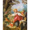 The Happy Lovers by the 18th-century French artist Jean-Honoré Fragonard is a charming commentary on the nature of love and feminine wiles. The girl points to a bird trap she dangles above the young man’s head.