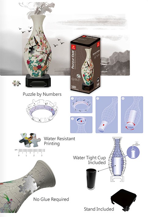 Available in a variety of images to enhance your decor, the puzzle vase is fully functional.